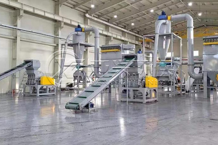 亞興成套鋰電池極片處理設備達到環保標準,以活性炭過濾設施,水噴淋設施,煙氣凈化設施等輔助完成氣味收集工序。在物料收集部分,設計相配套的收集設施,將物料自動收集,以物理化的加工方式,避免銅鋁氧化問題的產生,做到真正的鋰電池正負極片的回收利用,將銅鋁,隔膜,外殼做到99.8%的分離效率。廢舊鋰電池帶電或者經過放電以后,進行一級撕碎和破碎,破碎后物料通過輸送機,在輸送過程中或加溫烘干處理,再由分選設備祛除其中的鐵殼與隔膜紙之后剩下了鋰電池的正負極片混合物料,然后再由細碎破碎機和水磨搓球機(制粒機)進一步的細碎及靜電分離、篩分處理,將其中的鋁、銅和極片粘合物分離回收。